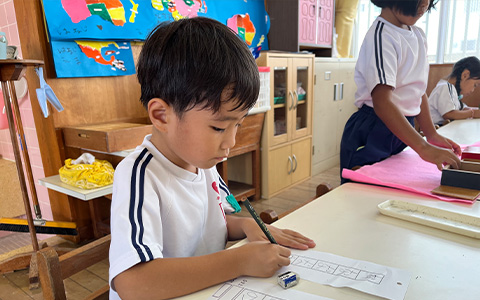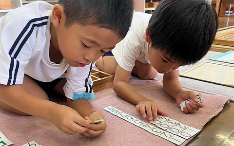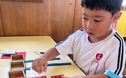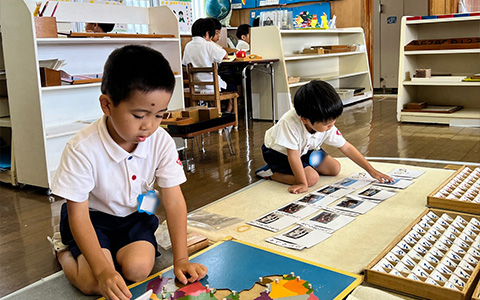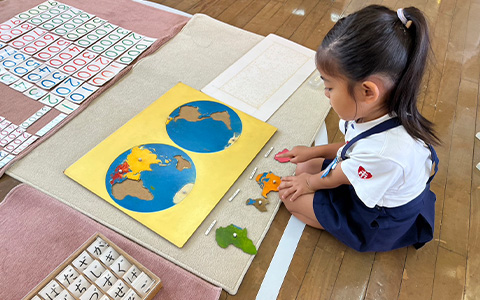 登園次第、朝の身支度を終え、モンテッソーリ活動の時間に入ります。