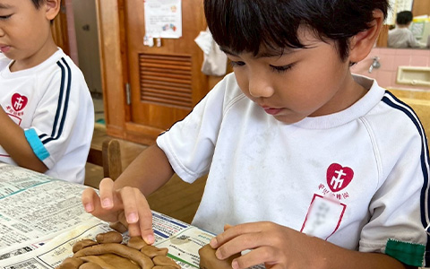 お当番さんが中心になって朝のお祈り、あいさつ、